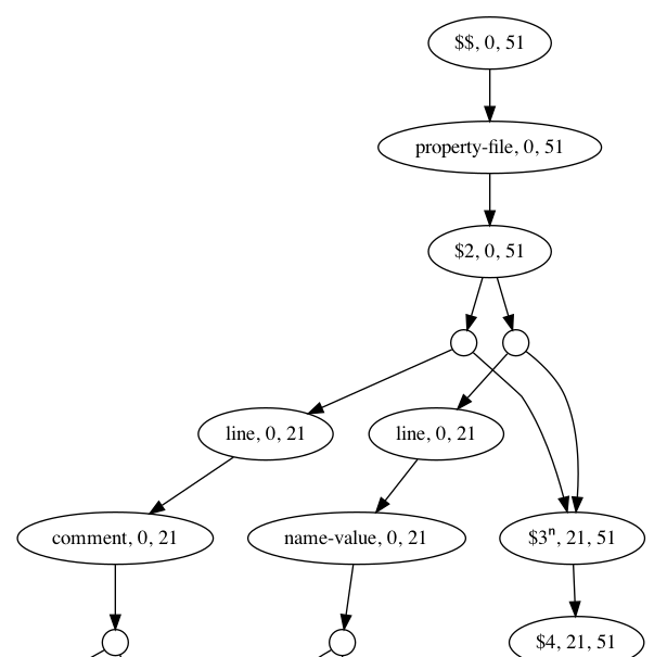 $ coffeepot -v -g:examples/prop4.ixml -i:examples/example.properties --describe-ambiguity -ppLoading ixml grammar: examples/prop4.ixmlLoading input from examples/example.properties<property-file><comment> This is a comment.</comment><name-value><name>name1</name><value>value1</value></name-value><name-value><name>name2</name><value>value2</value></name-value><name-value><name>name3</name><value>apple,banana,pear</value></name-value><blank/><name-value><name>name4</name><value>a<tab/>b</value></name-value><name-value><name>name5</name><value>a<uref>2192</uref>b </value></name-value><name-value><name>name6</name><value>c:\path\to\thing</value></name-value></property-file>